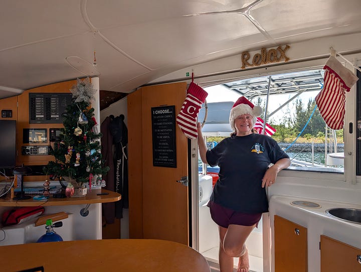 As I write this, we’re anchored at Bond’s Cay waiting on a weather window to sail south to West Bay, New Providence. We’ll be there either Christmas Eve or Christmas, depending on the weather and/or our appetite for a couple of hours of less than champagne sailing.