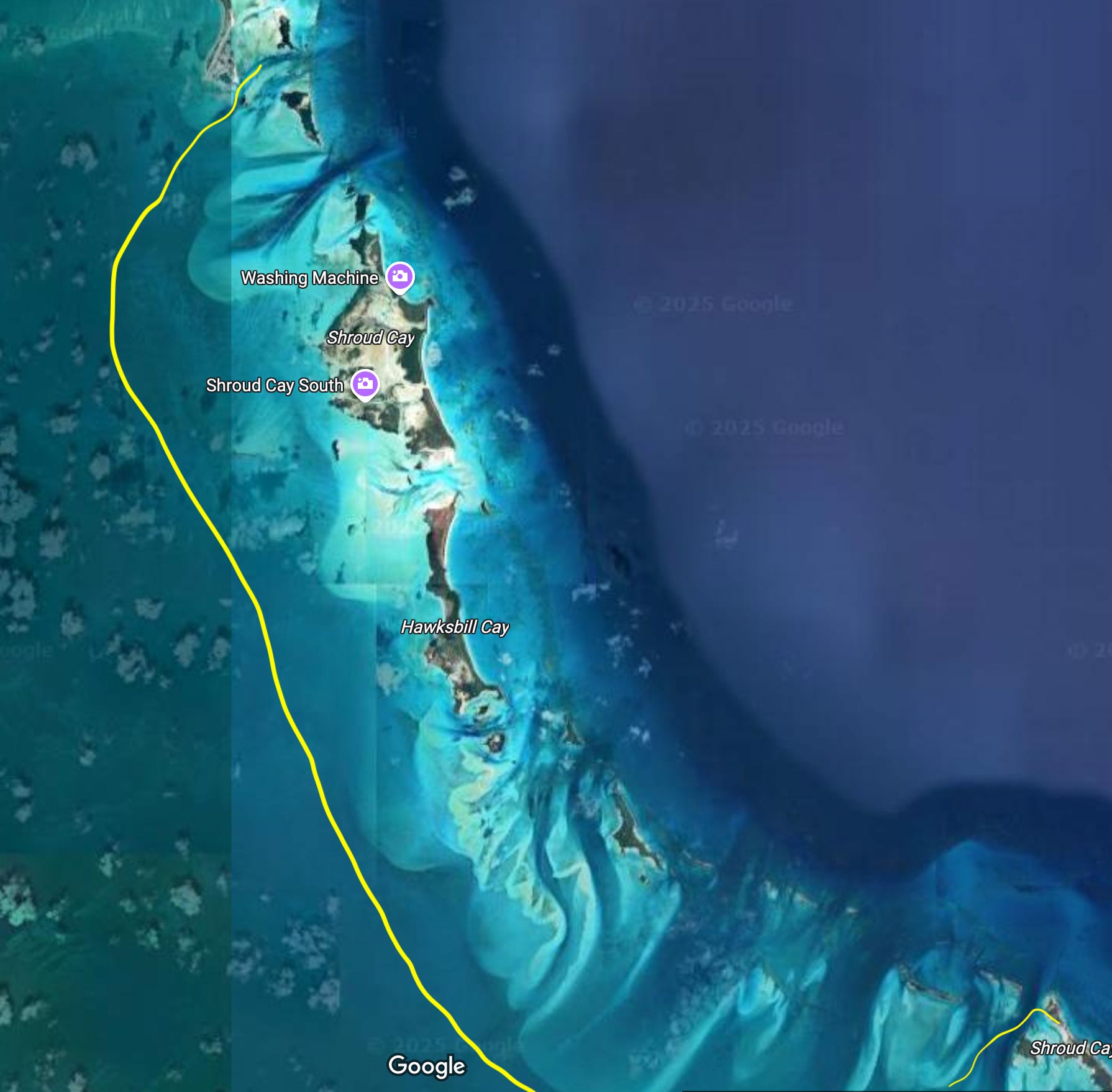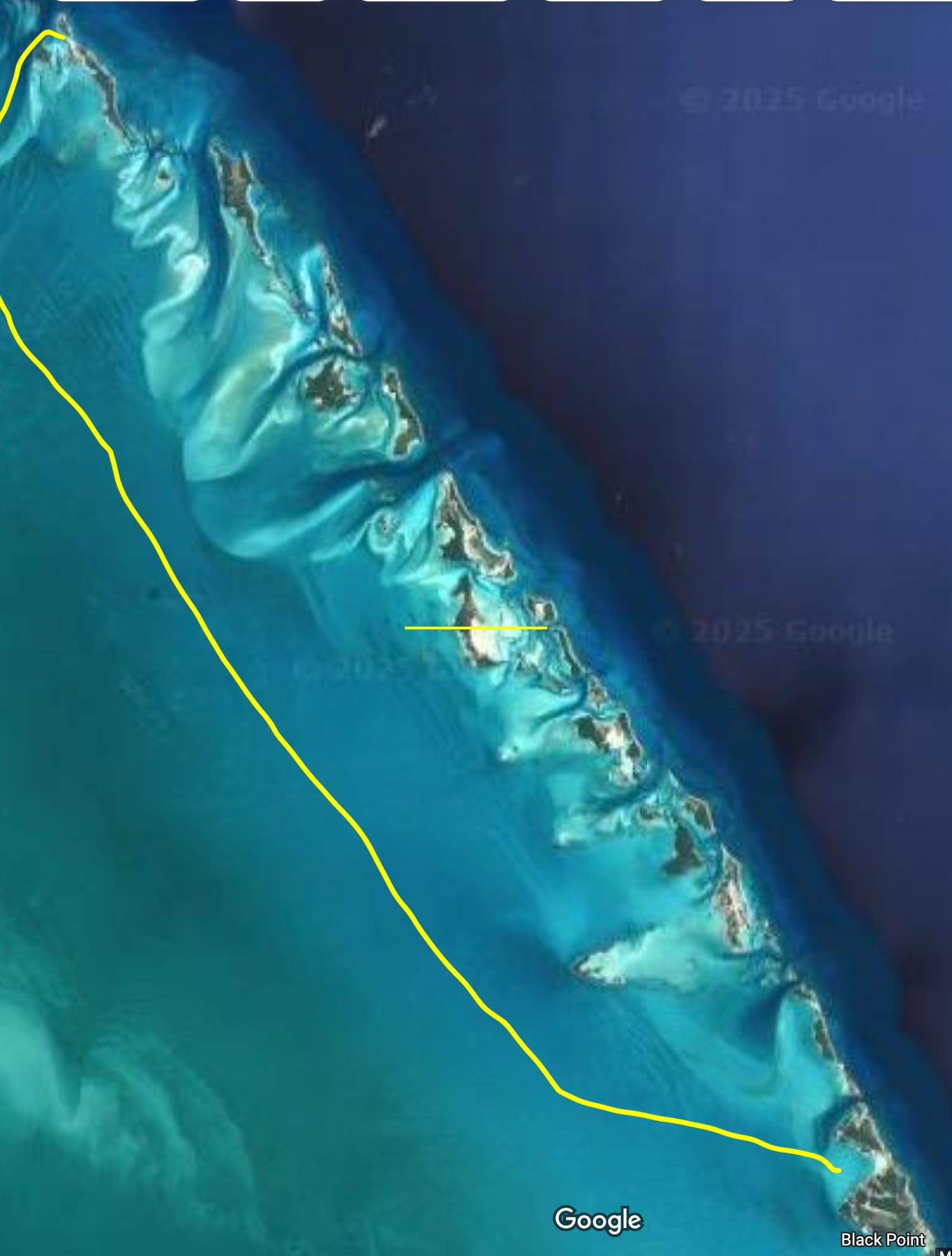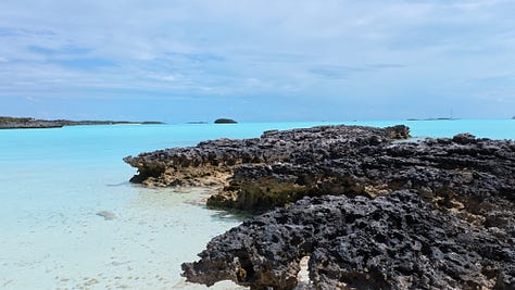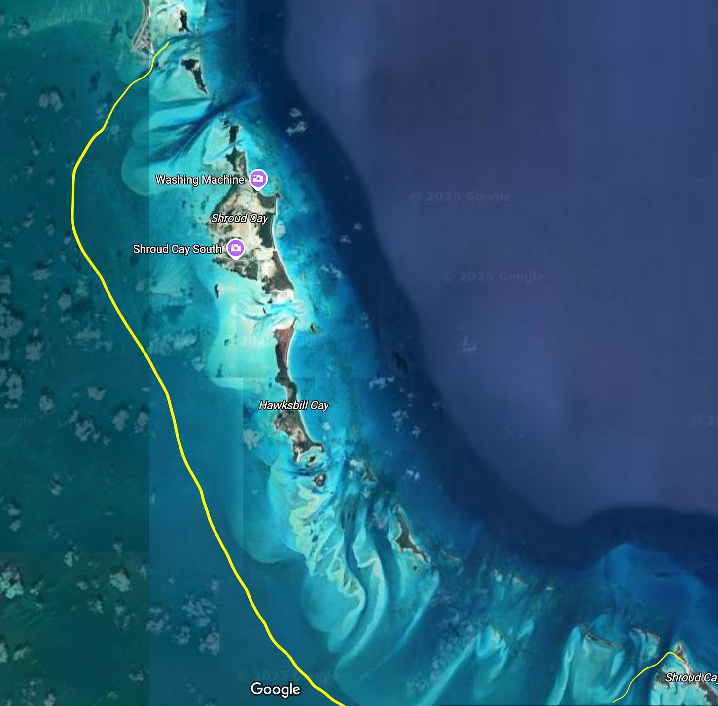 The marker that looks like a rook chess piece that you see on the map just north of where we anchored is a plane that went down decades ago and is now a reef thats a popular snorkel and dive spot. Randomly, the Bahamian waters are littered with planes owned by drug dealers that failed to take flight. Apparently proper loading of cargo was never taught in the flight schools they attended because they seemed to overload a plane every few years.