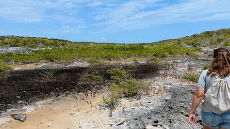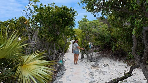 Getting into the cut where the mooring balls were was a little tense. I still hadn’t gotten used to tight maneuvers where there was a foot (or less!) under the keel. And that cut to get into the mooring field was very thin. Luckily, we made it to the mooring ball without sanding the bottom of the boat, got tied off, and dropped the dinghy. We visited the park office to check-in and spent some time exploring the island. It felt like a weird mixture of environments, going from beautiful beach, to tropical brush, to primordial bog, all separated by only a few minutes of walking.